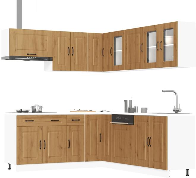 Ez az elegáns kialakítású, tizenegy részes konyhai szekrénygarnitúra optimalizálja konyhája terét, és bőséges tárolóhelyet biztosít személyes tárgyainak! Stabil és tartós anyag: A szerelt fa tartós és stabil anyag sima felülettel, amely ellenáll a nedvességnek, a vetemedésnek és a hasadásnak, így megbízható választás különféle célokhoz. Bőséges tárolóhely: