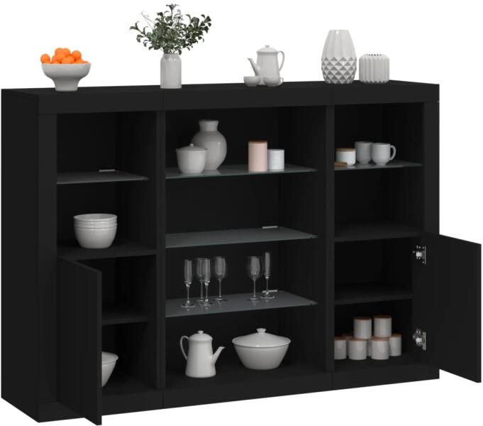 Díszítse fel szobáját ezekkel a modern, LED-es lámpákkal felszerelt tálalószekrényekkel, melyek könnyedén beleolvadnak otthona bármely stílusába. Prémium minőségű anyag: A szerelt fa kivételes minőségű, sima felületű, szilárd, stabil és ellenáll a nedvességnek. Bőséges tárolóhely: A tálalószekrények rengeteg tárolóhelyet biztosítanak folyóiratai, könyvei, t