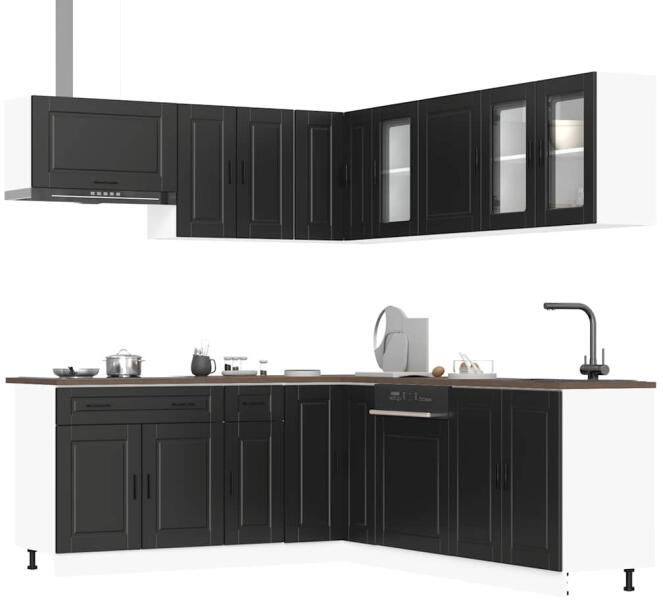 Ez az elegáns kialakítású, tizenegy részes konyhai szekrénygarnitúra optimalizálja konyhája terét, és bőséges tárolóhelyet biztosít személyes tárgyainak! Stabil és tartós anyag: A szerelt fa tartós és stabil anyag sima felülettel, amely ellenáll a nedvességnek, a vetemedésnek és a hasadásnak, így megbízható választás különféle célokhoz. Bőséges tárolóhely:
