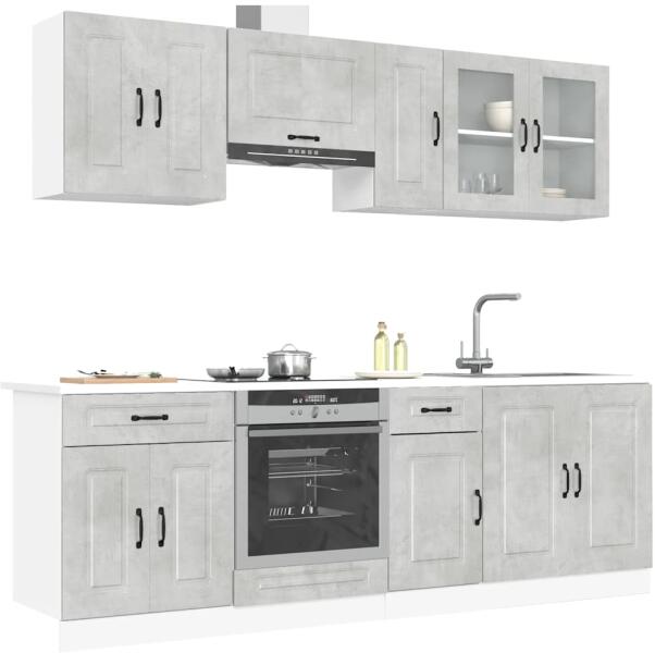 Ez az elegáns kialakítású, nyolcrészes konyhai szekrénygarnitúra optimalizálja konyhája terét, és bőséges tárolóhelyet biztosít személyes tárgyainak! Stabil és tartós anyag: A szerelt fa tartós és stabil anyag sima felülettel, amely ellenáll a nedvességnek, a vetemedésnek és a hasadásnak, így megbízható választás különféle célokhoz. Bőséges tárolóhely: A ko