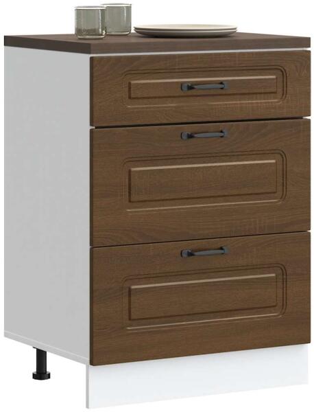 Ez a klasszikus tálalószekrény időtlen megjelenésű, így tökéletes kiegészítője lesz otthonának. Erős anyag: A szerelt fa kivételes minőségű, sima felületű, szilárd, stabil, és ellenáll a nedvességnek. Bőséges tárolóhely: A 3 fiókkal rendelkező tálalószekrény bőséges helyet biztosít alapvető kellékei elérhető közelségben történő, rendezett tárolásához