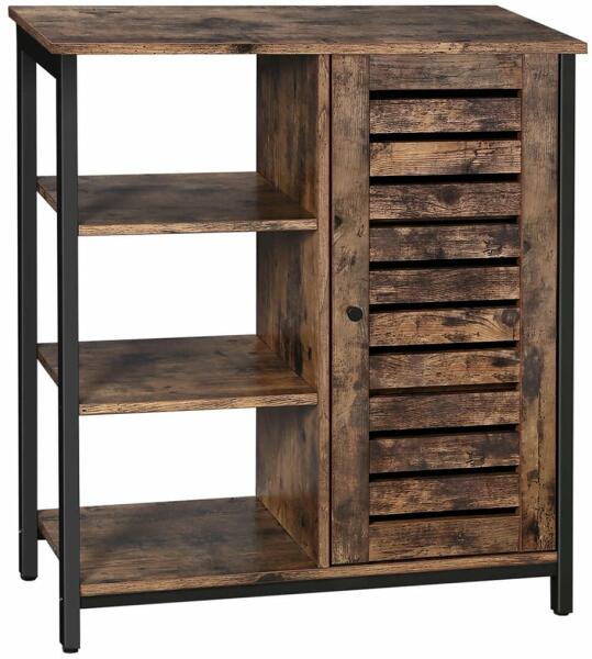 tálalószekrény, konyhaszekrény 3 nyitott polccal, fürdőszoba szekrény, nappali, előszoba, konyha, otthoni iroda, acélvázas, ipari stílusú, vintage barna-fekete Megfelel az elvárásainak?Polc a konyhában, tálaló a folyosón, könyvespolc a nappaliban, iratszekrény a dolgozószobában - bármit is tervez ezzel a bútorral, a 3 nyitott polc és a szekrény mindenhol bőséges tárol