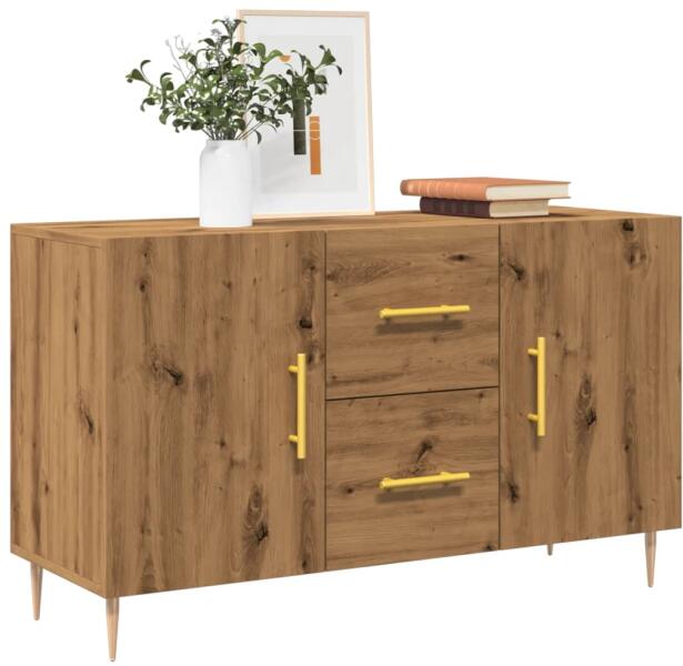Ez a modern, időtlen megjelenésű tálalószekrény otthona nagyszerű kiegészítője lesz. Tartós anyag: A szerelt fa kivételes minőségű, sima felületű, szilárd, stabil, és ellenáll a nedvességnek. Fémlábak: A fémlábak modern és visszafogott stílust kölcsönöznek otthonának, ráadásul a stabilitásról is gondoskodnak. Bőséges tárolóhely: A tálalószekrény bőséges
