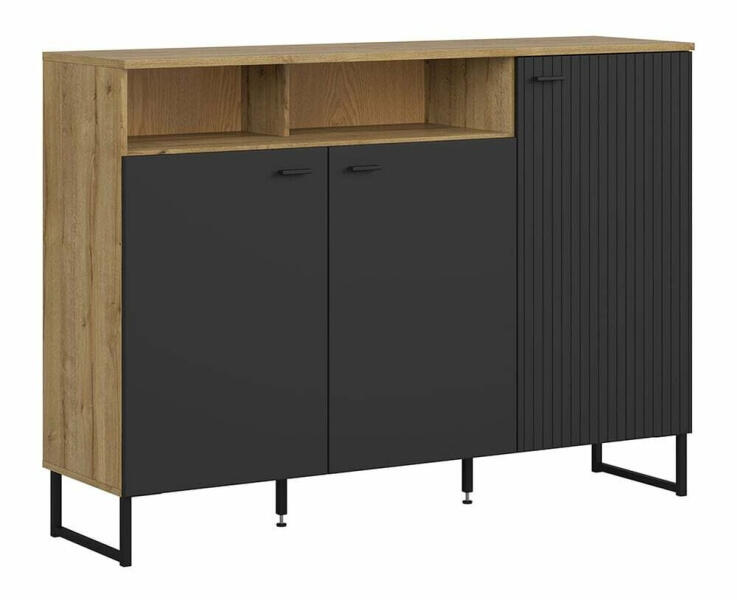 Ez a masszív tálalószekrény divatos, mégis praktikus kialakításával garantáltan szobája gyöngyszeme lesz. Stabil anyag: A tálalószekrény váza hidegen hengerelt acélból készült. A hidegen hengerelt acél egyfajta alacsony szén-dioxid-kibocsátású acél, amelyet hideghengerlési eljárással állítanak elő, és közel normál szobahőmérsékleten dolgoznak fel. A hidegen hen