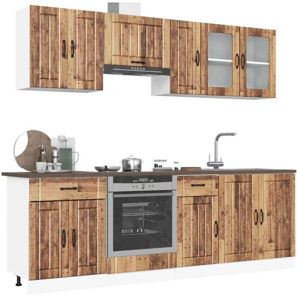 Ez az elegáns kialakítású, nyolcrészes konyhai szekrénygarnitúra optimalizálja konyhája terét, és bőséges tárolóhelyet biztosít személyes tárgyainak! Stabil és tartós anyag: A szerelt fa tartós és stabil anyag sima felülettel, amely ellenáll a nedvességnek, a vetemedésnek és a hasadásnak, így megbízható választás különféle célokhoz. Bőséges tárolóhely: A ko