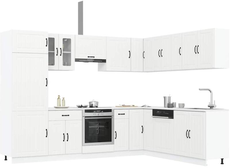 Ez az elegáns kialakítású, tizennégy részes konyhai szekrénygarnitúra optimalizálja konyhája terét, és bőséges tárolóhelyet biztosít személyes tárgyainak! Stabil és tartós anyag: A szerelt fa tartós és stabil anyag sima felülettel, amely ellenáll a nedvességnek, a vetemedésnek és a hasadásnak, így megbízható választás különféle célokhoz. Bőséges tárolóhely