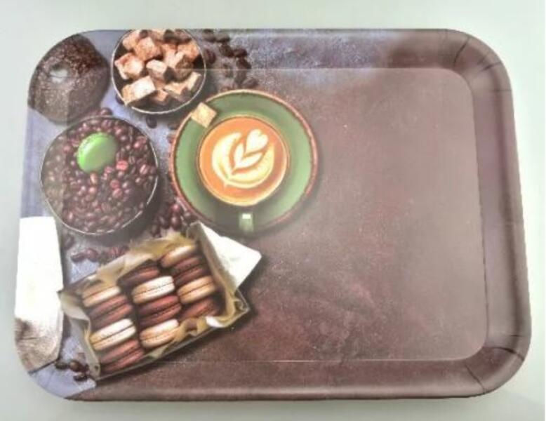 Ach Impex kávé + mignon mintájú tálca. Méret: 39,5 cm x 29 cm x 2,3 cm. Anyag: műanyag. Tisztítása során kerülje a karcosodást okozó szereket és eszközöket.
