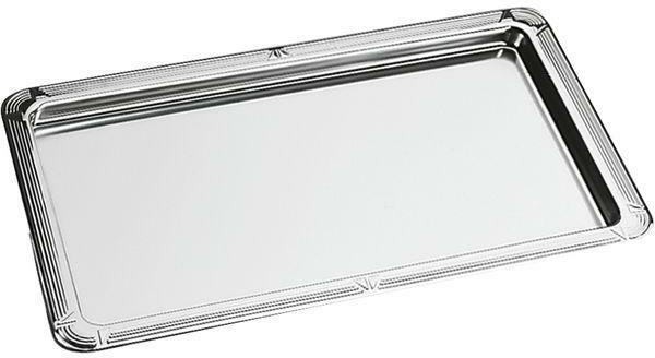 Tálca, szögletes, rozsdamentes acél, krómozott, 40x32,5cm (KHKE030) Rozsdamentes acélból készült 18/10-es inox termék. Szögletes forma, llekerekített sarkokkal. Tükörsima felület, mosogatógépbe tehető. A magas minőségű anyagfelhasználásnak, és megmunkálásnak köszönhetően a termék kivételesen időtálló.