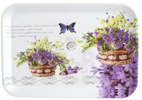 Hangulatos, levendula mintás műanyag tálca. Jól tisztítható felület mindennapi használatra. otthoni és irodai használatra egyaránta lkalmas.