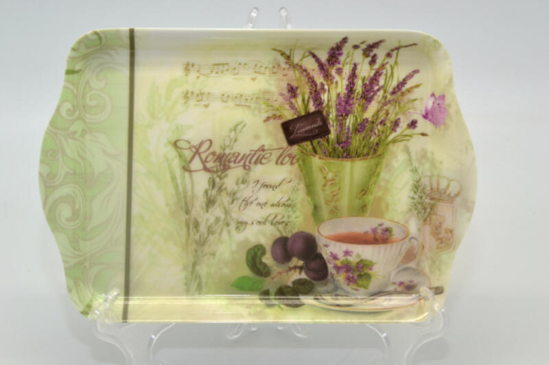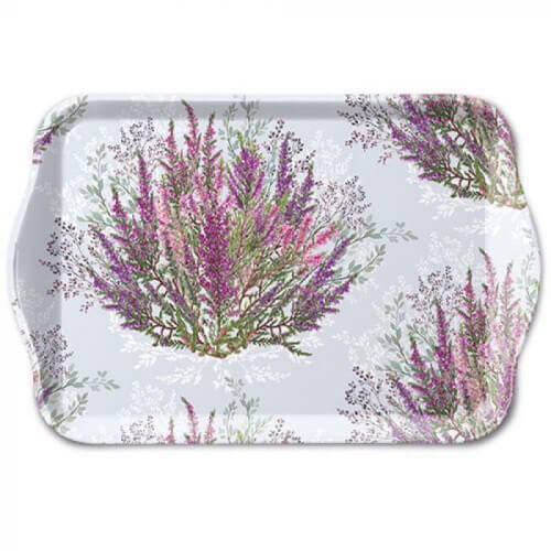 Hangulatos calluna - csarab hanga virág mintás kisméretű műanyag tálca, mely remek alátét egy teázás/kávézás során. Mérete: 21x13 cm. Remekül illik a levendulás kollekcióhoz is.