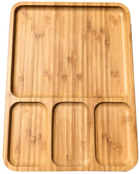 Megjegyzés: Ez a leírás automatikusan le lett fordítva magyarra. A Pufo fa tálalótányérja tartós és praktikus. 4 részre osztható, így ideális előételek, húsok, édességek vagy egyéb ételek tálalására. Használat után a tálcát ki kell mosni és szárítani. Mérete : 28 x 24 x 1,5 cm Anyaga: bambusz fa Szín: barna KLASSZIKUS DESIGN Klasszikus dizájn, melynek köszönhet