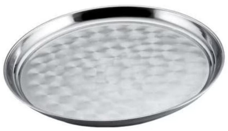 Rozsdamentes acélból készült kerek tálca, fényes ezüst. Könnyű tisztán tartani, mosogatógépben is mosható. Anyaga: Rozsdamentes acélÁtmérő: 30 cmMagasság: 2 cmSúly: 0.37 kg