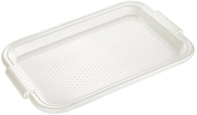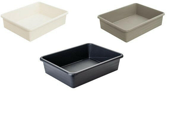Négyszög formájú műanyag tálca. Klasszikus kivitel. Egyszerűen tisztítható.