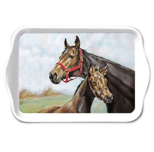 Lovak szerelmeseinek! Szép barna lovas mintájú kisméretű műanyag tálca, mely remek alátét egy teázás/kávézás során. Mérete: 21x13 cm.