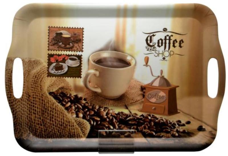 Tálca, szögletes, műanyag, kávéház mintás, 35,5x25,5 cm (KHKE252) Praktikus, jól tisztítható, csúszásmentes. Mosogatógépben tisztítható. Méret: 35,5 x 25,5 cm