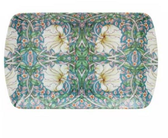 William Morris festőművész, iparművész motívumával díszített kiváló minőségű, kisméretű tálca. Mérete: 24x3x16 cm. Minőségi melamin tálca. Minőségi Leonardo kollekció. William Morris angol festőművész, iparművész és író, költő volt. Építésznek tanult. Londonba kerülése után találkozott a preraffaelita Rossettivel, akinek hatása alá kerülvén a festészet