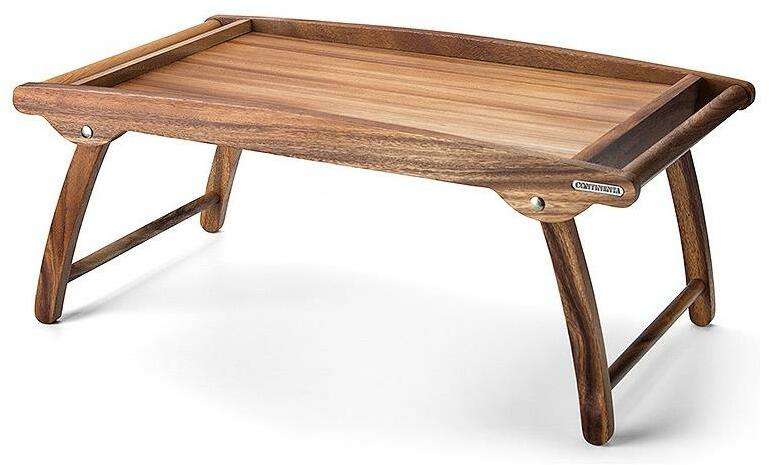 Akácfából készült tálca az ágyhoz. Kifinomult, időtlen design, stabil konstrukció. Praktikus magasság az ágyba reggelizéshez. Laptopok számára is használható. Praktikus összecsukható lábak a gazdaságos tárolás érdekében. Olajozott felület a fa védelme és antibakteriális tulajdonságainak elősegítése érdekében. Kizárólag nedves ruhával tisztítható.