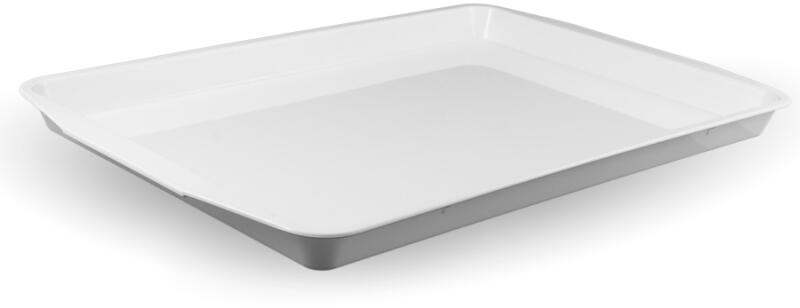 Csilla tálca műanyag nagy 30 cm x 44 cm, fehér. Tisztítása karcmentes mosogatószeres vízzel. Származási hely: Magyarország