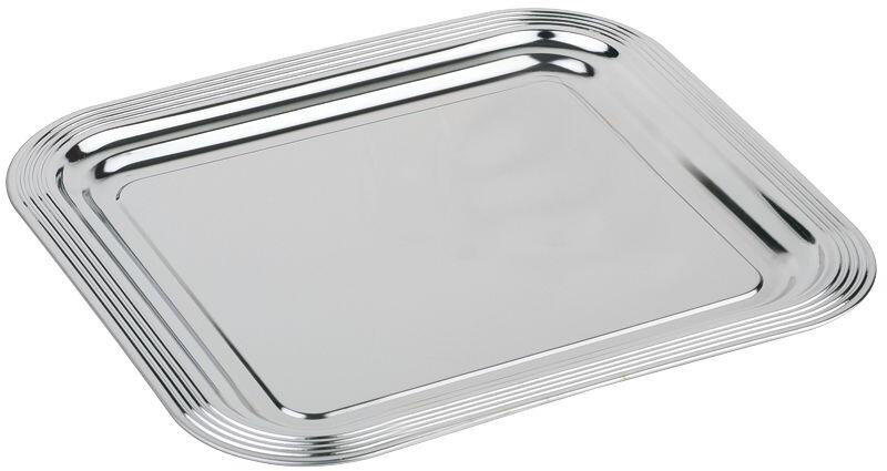 Négyszögletes rozsdamentes acél tálca 18/10-es inox anyagból 35 x 28 cm (Öt méretben kapható) .