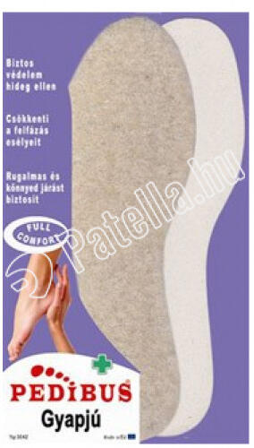 A Gyapjú talpbetétek tökéletesen védenek a hideg ellen. Meleget biztosító, 100% bárány gyapjú felsőrésszel és rugalmas latex hab alsórésszel készült. A talpbetét ideális téli kiegészítője a cipőnek, mivel az anyaga segít melegen tartani a lábat. Kiszerelés:
