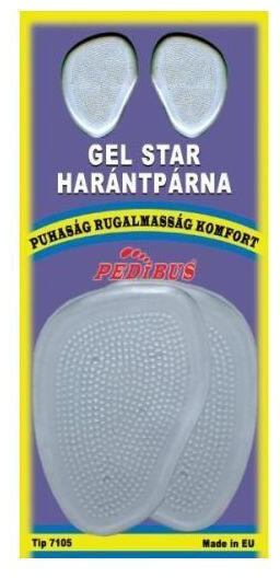 Gel Star, kényelmes harántpárna, mely puha gél anyagból készült. 1 pár gél harántpárna; Pedibus termék az egész napos komfortért és higiéniáért.