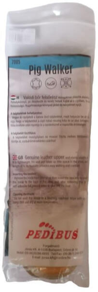 3/4-es sertésbőr gyógytalpbetét, haránt-, és lúdtalpemeléssel, rugalmas sarokággyal. 1 pár 3/4-es gyógytalpbetét; Pedibus termék 3/4-es sertésbőr gyógytalpbetét.