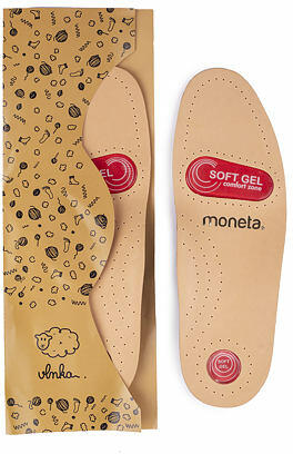 Kellemes perforált birka bőrből készült ortopéd talpbetét, latex hab réteggel, aktív szénnel és gélpárnákkal a sarok és a láb elülső ujj része alatt, melyek minden lépésnél puha felületet és kellemes érzést biztosítanak. A talpbetét formatervezett műanyag kialakítása csökkenti a láb terhelését és deformációját, és egyúttal megtámasztja a láb keresztirány
