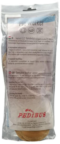 3/4-es sertésbőr gyógytalpbetét, haránt-, és lúdtalpemeléssel, rugalmas sarokággyal. 1 pár 3/4-es gyógytalpbetét; Pedibus termék 3/4-es sertésbőr gyógytalpbetét.