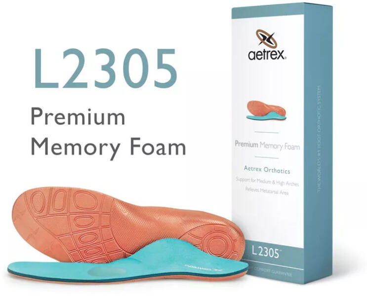 Aetrex Premium Memory Foam Talpbetét L2305 – Lábfejfájdalmakkal küszködő közepes és magas lábboltozatokhoz készült talpbetétünk, rendelkezik egy ergonomikus sarokrésszel a láb hátsó részének párnázására és stabilizálására, valamint egy lábközépcsont-párnával a súly optimális elosztása érdekében, hogy ezáltal enyhítse a lábfejnél jelentkező kényelmetlens