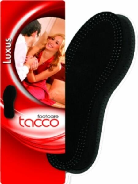 A Tacco Deluxe női fekete bőr talpbetét a lábbeli kényelmét és tartását segíti. A termék strapabíró bőrből készült, mely maximális kényelmet biztosít viselés közben. A talpbetét csökkenti a talp- és lábujj fájdalmat, valamint javítja a lábbeli illeszkedését. Ideális választás mindennapos használatra, és könnyen illeszthető a különböző cipőméretekhez. A T