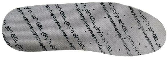 Külső talpbetétek, amelyek az anatómiai formának és a sarok párnázatának köszönhetően tökéletesen elnyelik az ütéseket és így maximális kényelmet biztosítanak járás közben. Mikroszálas felsőrésze is tökéletes légáteresztést biztosít. EVA hab az ütéselnyelés érdekében szabadabb hely a hüvelykujj területén emlékező szivacs Kulcsszó : Cipőbetét Szezon : S