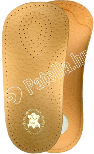 3/4-es hosszúságú, valódi bőr gyógytalpbetét, haránt-, és lúdtalpemeléssel, rugalmas sarokággyal. A talpbetét közepén lévő párna megemeli a harántot, ezáltal leveszi a terhelést a harántcsontozatról. A lúdtalp emelése leveszi a hosszanti izomzatra nehezedő terhelést, enyhíti a derék és hát fájdalmakat. A sarok részen lévő puha párna elnyeli az ízületeket ért