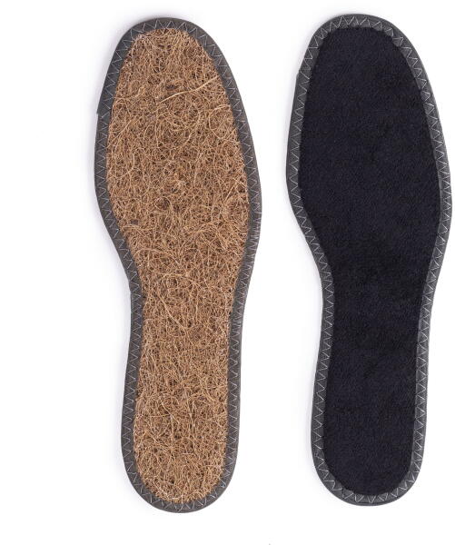 A kókuszrost talpbetét természetes és higiénikus réteggel rendelkezik, amely főként nagyon erőltetett és fáradt lábak számára alkalmas. A frottír pamut felső réteg, habszivacs és a kókuszrost felület kombinációja, varrással az egész szél mentén, garantálja a különösen jó dezodor és aromás tulajdonságokat. Ezt a tökéletes segítőt zárt cipőhöz nagyra fogja é