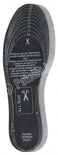 Vászon felsőrészből és aktívszén alsó részből készült. Perforációin keresztül jól szellőzik, ezáltal a cipőben a láb kevésbé izzad. Az aktív szénréteg semlegesíti a kellemetlen lábszagot. Puhasága csökkenti a bőrkeményedés kialakulását és tehermentesíti az ízületeket. A talpbetét 30°C-on mosható. Kiszerelés:
