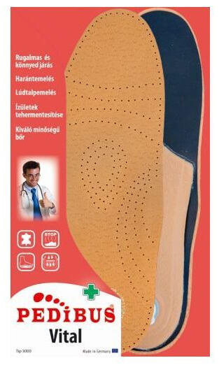 Valódi bőr felsőrészből és rugalmas aktív szenes alsórészből készült. 1 pár talpbetét; Pedibus termék az egész napos komfortért és higiéniáért.