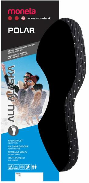 Téli talpbetét alumíniumfóliával, amely nem engedi a hideget a lábhoz, és ellenkezőleg, a meleget nem engedi távozni. A talpbetét teteje puha és sima anyagból készült, amely melegséget garantál a lábnak. Alatta egy réteg aktív szén található, amely felszívja az izzadságot, megakadályozza a szagok kialakulását és kiváló egészségügyi tulajdonságokkal rendelkezik. A