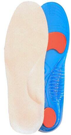 A gél talpbetét velúrral van bevonva, és tompítja a talpra ható ütéseket. Segít enyhíteni a láb, térd és hátgerinc fájdalmát. Támasztja hosszboltozatot és a kényelem érzését biztosítja. Igényesebb körülményekbeb végzett mozgáshoz és igényes foglalkozások számára ajánlott. A cipőbetétek kiváló minőségű szilikonból készülnek és puha velúrral vannak bevo