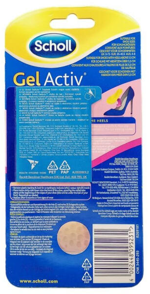 Az alábbi cipőméretekhez megfelelő: UK: 3-7,5; EU: 35-40,5; AUS: 4-8. 5,5 cm-nél nagyobb sarkú cipőkhöz megfelelő. 1 db GelActiv talpbetét; Scholl termék az optimális kényelemért.