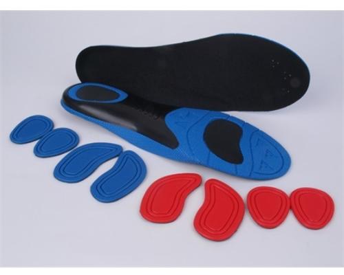 Különböző keménységű EVA anyagból készült talpbetét kényelmes lábággyal. Az eltérő keménységű párnák az aktuális igényeknek megfelelő kényelmet biztosítanak és könnyedén átcserélhetők. A kék párna keményebb, így sportoláshoz és extrémebb igénybevételhez ajánlott, még a piros átlagos igénybevételhez, mindennapi használatra. A lábujjaknál kialakított