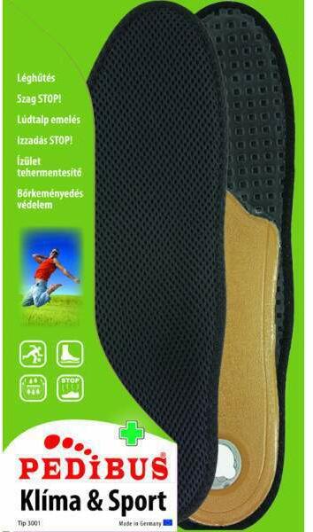 Szendvicsbetét. Hossz- harántboltozatot jól korrigáló talpbetét, mely a talp körvonalát követi, felső borítása a cipőben végig ér. Thermoplasztikus, testbarát anyagból készülő, rétegesen kialakított betét. Kiszerelés: