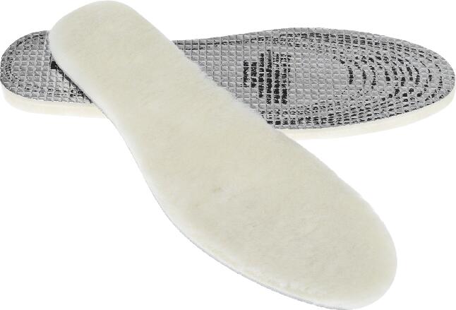 Téli talpbetét 30% juhgyapjúval való díszítés. A birkagyapjú ismert jellegzetes melegségéről és arról a képességéről, hogy a nedvesség akár 80%-át is képes magába szívni. Ez a talpbetét nemcsak hőkomfortot, hanem száraz lábérzetet is biztosít. A talpbetét alja alumíniumfóliából készült, amely