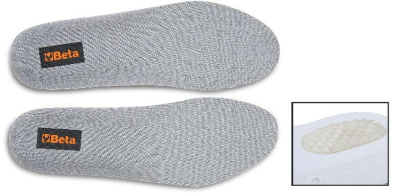 A lúdtalp- és haránt emelőkkel ellátott talpbetét rugalmas anyagának köszönhetően felveszi a láb formáját, csillapítja a járás és állás közbeni rezgéseket. Rugalmas gumi és borjúszín bélés. Elöl nyitott cipőben, nyári viseletként is hordható. Kiszerelés: