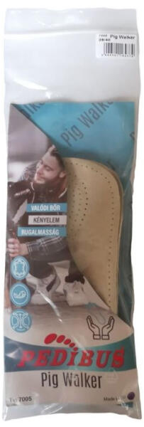 3/4-es sertésbőr gyógytalpbetét, haránt-, és lúdtalpemeléssel, rugalmas sarokággyal. 1 pár 3/4-es gyógytalpbetét; Pedibus termék 3/4-es sertésbőr gyógytalpbetét.