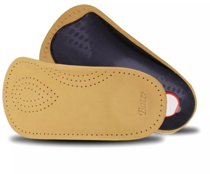 Batz 980 Wellness talpbetét. Perforált, lélegző bőr felsőrészből és hosszboltozat emelő rétegből álló luxus, 3/4-es talpbetét, mely maximális komfortot biztosít a mindennapok során. Sarokpárnái elnyelik a lépéskor keletkező ütődéseket, ezáltal csökkenthetik az esetleges derék és hátfájdalmakat. A sarokrészen lévő rögzítő tapaszok megakadályozzák, hogy a talp