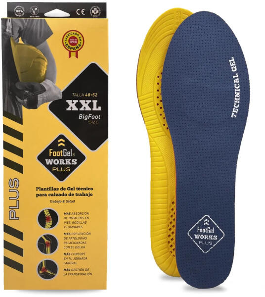 A FootGelnél nagyban gondolkodunk, ezért tervezzük, hogy kielégítsük azon dolgozók igényeit, akiknek extra nagy méretre van szükségük. A Work Plus termékcsaládon belül XXL MÉRETEKET kínálunk 48-tól 52-ig, így senkinek sem kell feladnia a munka kényelmét és jó közérzetét.