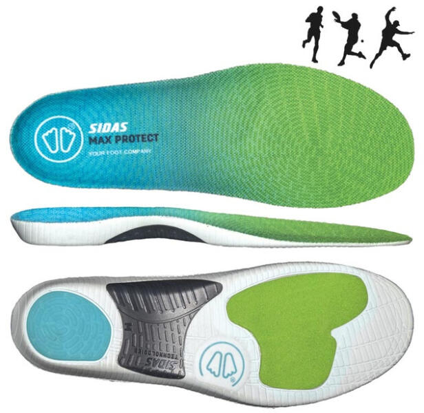 A beltéri cipőkhöz való Max Protect talpbetétek fő előnyei a dinamika és a párnázás. A Podiane®I+ technológiának köszönhetően, amely az ütközési energia akár 90%-át is elnyeli, a talpbetét védi az ízületeket. A lábujjízületek alatti speciális anyag javítja a visszapattanást. A rugalmas