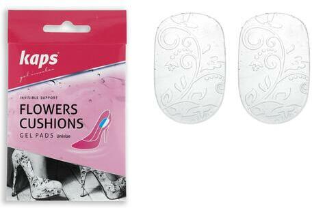 A Flowers Cushions zselés talpbetét virágmotívummal a sarok alá biztosítja a láb megfelelő helyzetét a cipőben és a járás kényelmét . A szilikon gél folyamatosan masszírozza a lábfejet , aminek köszönhetően a lábakban megindul a vérkeringés. Ezek a zselés talpbetétek különösen alkalmasak a magas sarkú cipőkhöz . Öntapadók és többször használhatók. Anyag szili