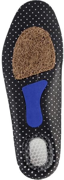 Haránt-emelős lúdtalpbetét speciális rezgéscsillapító funkcióval, valódi bőr felsőrésszel. A nyomás-ellennyomás hatásának köszönhetően a hab alsórész minden lépésnél a levegő több irányú áramlását teszi lehetővé. A talpbetét intelligens anyaga képes "emlékezni" a láb pontos formájára, így egy aktuális lábnyomatot készít a talpbetéten. A talpbetét köz