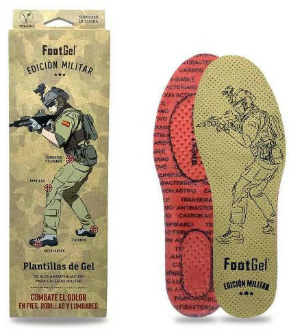 FOOTGEL MILITARY Talpbetét túracipőhöz - illatosított A Footgel MILITARY gélbetét magas ütéscsillapításuk és védelmük miatt kifejezetten merev lábbelikhez ajánljuk. Így ideálisak katonai bakancsokhoz, rendőröknek, vadászoknak és nehéz bakancsokban való hosszú távú gyalogláshoz. A talpbetét segít az ízületekben az ütésátvitellel járó fájdalmak lebontásában é