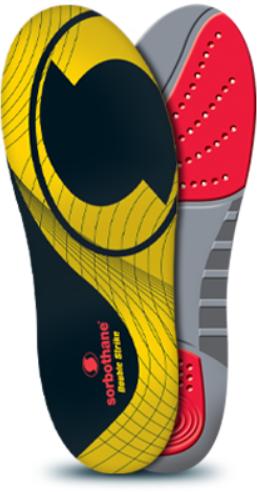 A Sorbothane Double Strike talpbetét minden olyan életstílushoz, élethelyzetekre, tevékenységekre és igénybevételekre tervezték, ahol a talp elülső része és sarok egyaránt nagy igénybevételnek kitéve. A megfelelően kialakított és a beépített kényelmes sarokcsésze és a sarokban található átfogó ütéscsillapító rész, mind azt a cél szolgálják, hogy a sarkot a leh